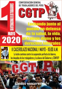 Hagamos escuchar nuestras demandas por salud, pan y trabajo contra la suspensión perfecta de labores y los despidos de trabajadores, contra el hambre y la miseria y la exclusión de una justa distribución de la riqueza en esta horas de emergencia.